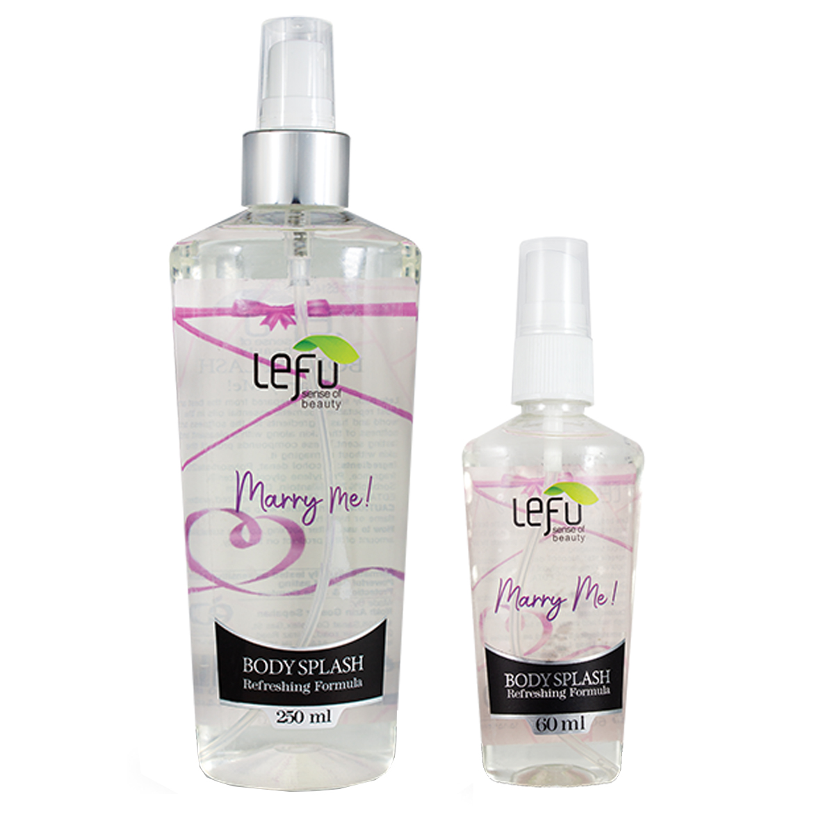 اسپری خوشبو کننده بدن لفو با رایحه MARRY ME حاوی اسانس ادکلن اصلی با گرید بهداشتی تحت لیسانس شرکت اصلی در ایران تولید می شود که با داشتن عصاره آلورا و دکسپنتول باعث نرمی و شادابی پوست شما می گردد همچنین رایحه خوش این بادی اسپلش 24 ساعت بر روی بدون شما مانده و لکی بر لباس شما ایجاد نخواهد کرد.