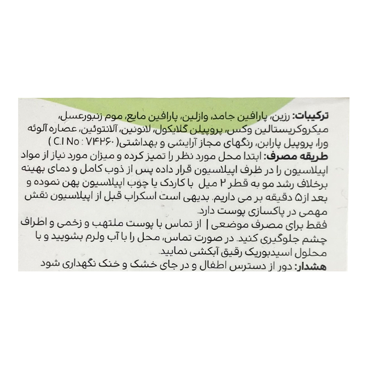 - زمانی که موم آماده شد، از یک قاشقک چوبی (یا از یک چوب بستنی تمیز) استفاده کنید تا موم را روی پوست در جهت رویش مو بمالید.