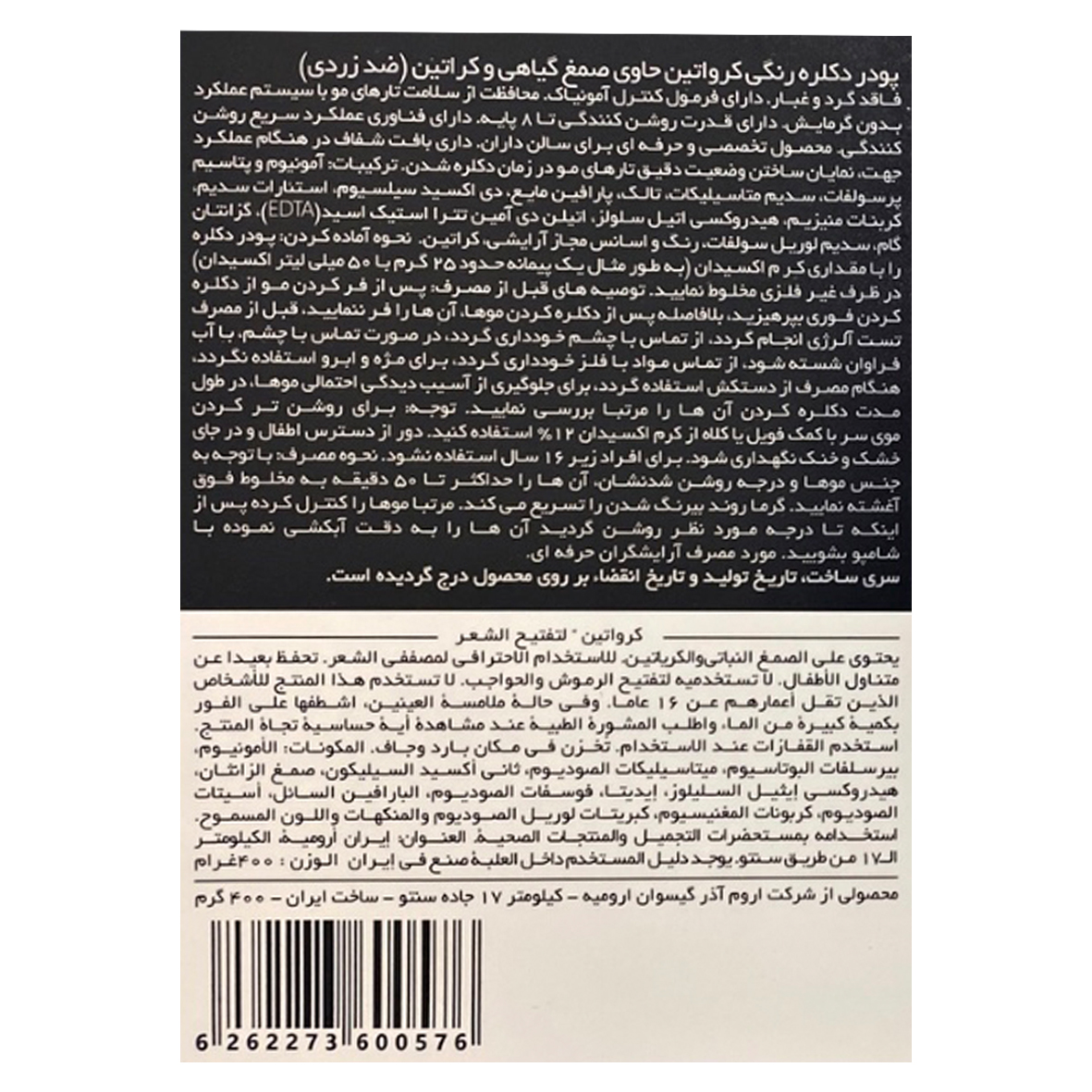 پودر دکلره رنگی کرواتین حاوی صمغ گیاهی و کراتین ( ضد زردی )
