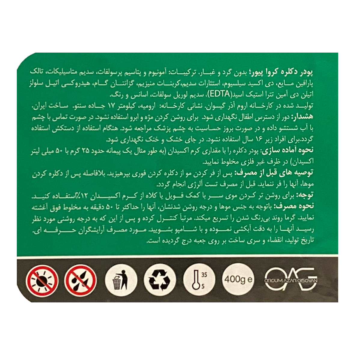 پودر دکلره رنگی کرواتین حاوی صمغ گیاهی و کراتین ( ضد زردی )