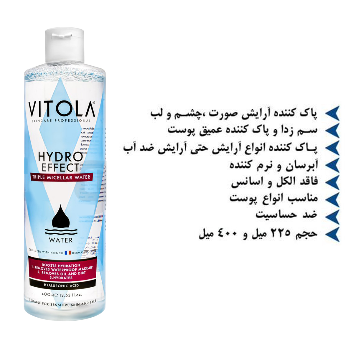 معرفی میسلار واتر 3 کاره مدل Hydro Effect مناسب پوست حساس 400میل ویتولا:
