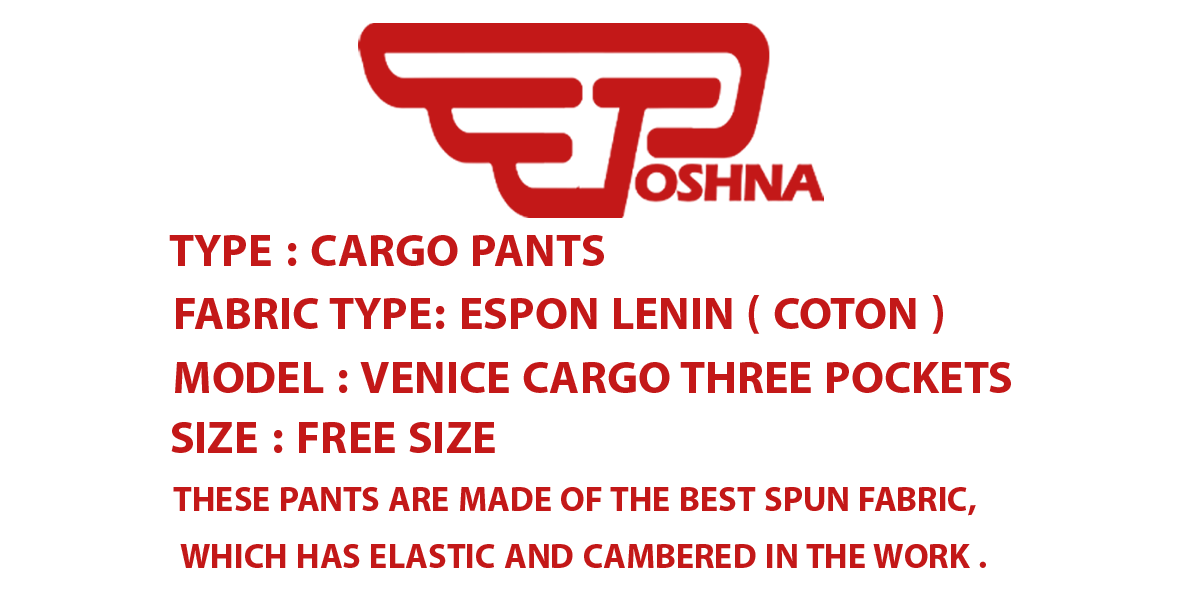 شلوار زنانه توشنا مدل کارگو ونیز سه جیب یکی از جدید ترین شلوارهای برند توشنا می باشد که در رنگ های مختلف تولید شده است.جنس پارچه این شلوار اسپان کتان کشی می باشد که یکی از بهترین نوع کتان کش بوده و همچنین مدل کارگو که دو جیب در کنار کمر و یک جیب جادار در قسمت زانو طراحی شده و از دیگر نقاط قوت این کار کمر آن بوده که به صورت تمام کش به همراه کمربند داخلی تولید شده است .