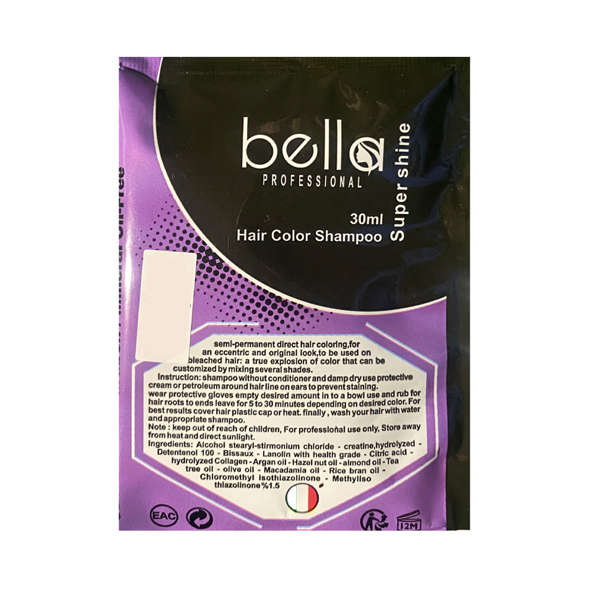 شامپو رنگ مو BELLA سری SUPER SHINE شماره 1022 حجم 30 میلی لیتر رنگ یاسی آماتیس