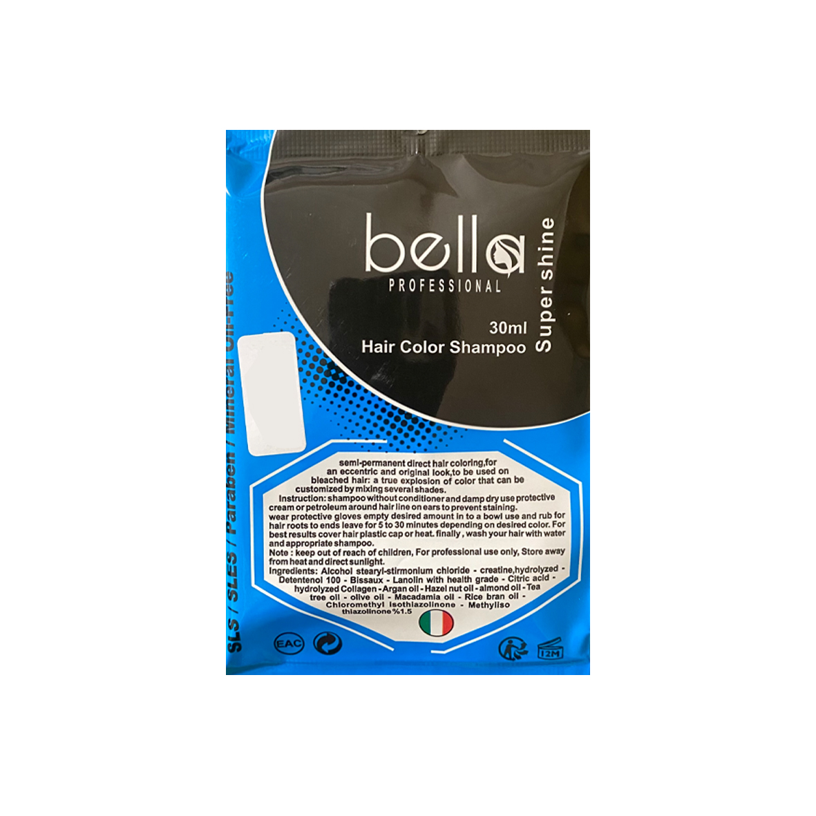 شامپو رنگ مو BELLA سری SUPER SHINE شماره 1005 حجم 30 میلی لیتر رنگ آبی درباری
