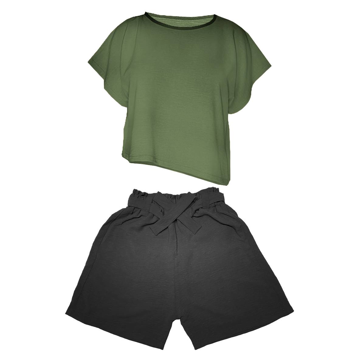 ست تی شرت و شلوارک 03 ویژه بانوان بوده و از بهترین پارچه ابر و بادی دوخته شده است.