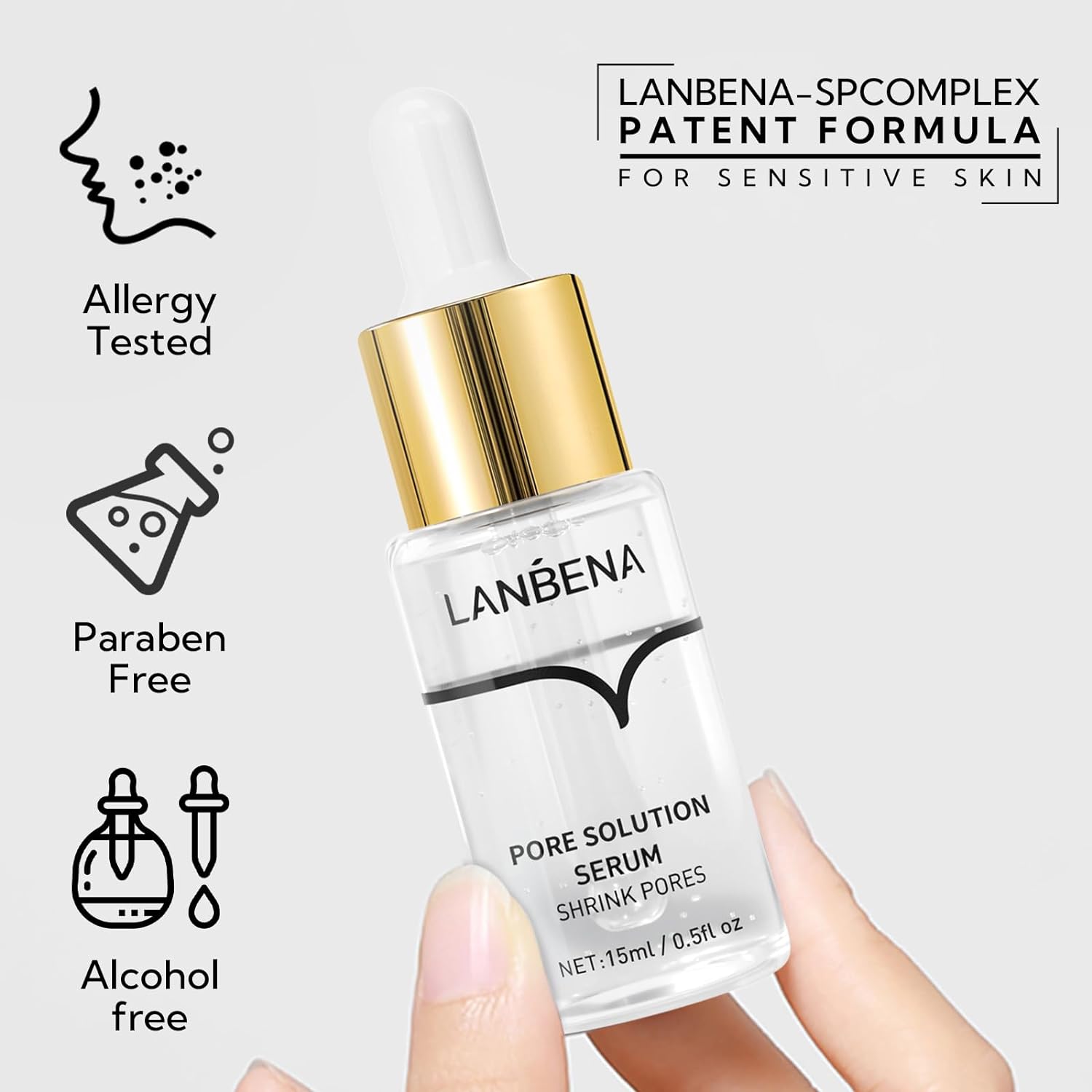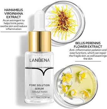 سرم کوچک کننده منافذ لانبنا LANBENA علاوه بر کنترل چربی و حفظ تعادل رطوبتی پوست از پیری آن جلوگیری می کند. این سرم چین و چروک پوست را کاهش می دهد. عصاره فندوق جادوگر ضد التهاب است که از شکنندگی پوست در برابر اشعه آفتاب جلوگیری می نماید. این عصاره آثار خستگی و رنگ پریدگی را از بین می برد و باعث رطوبت رسانی و رفع لک پوست می شود.