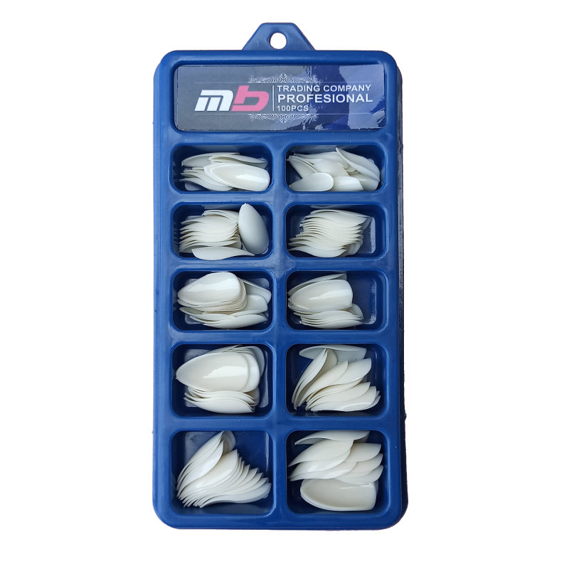 ناخن مصنوعی ام بی (MB) سر گرد رنگ شیری بسته 100 عددی