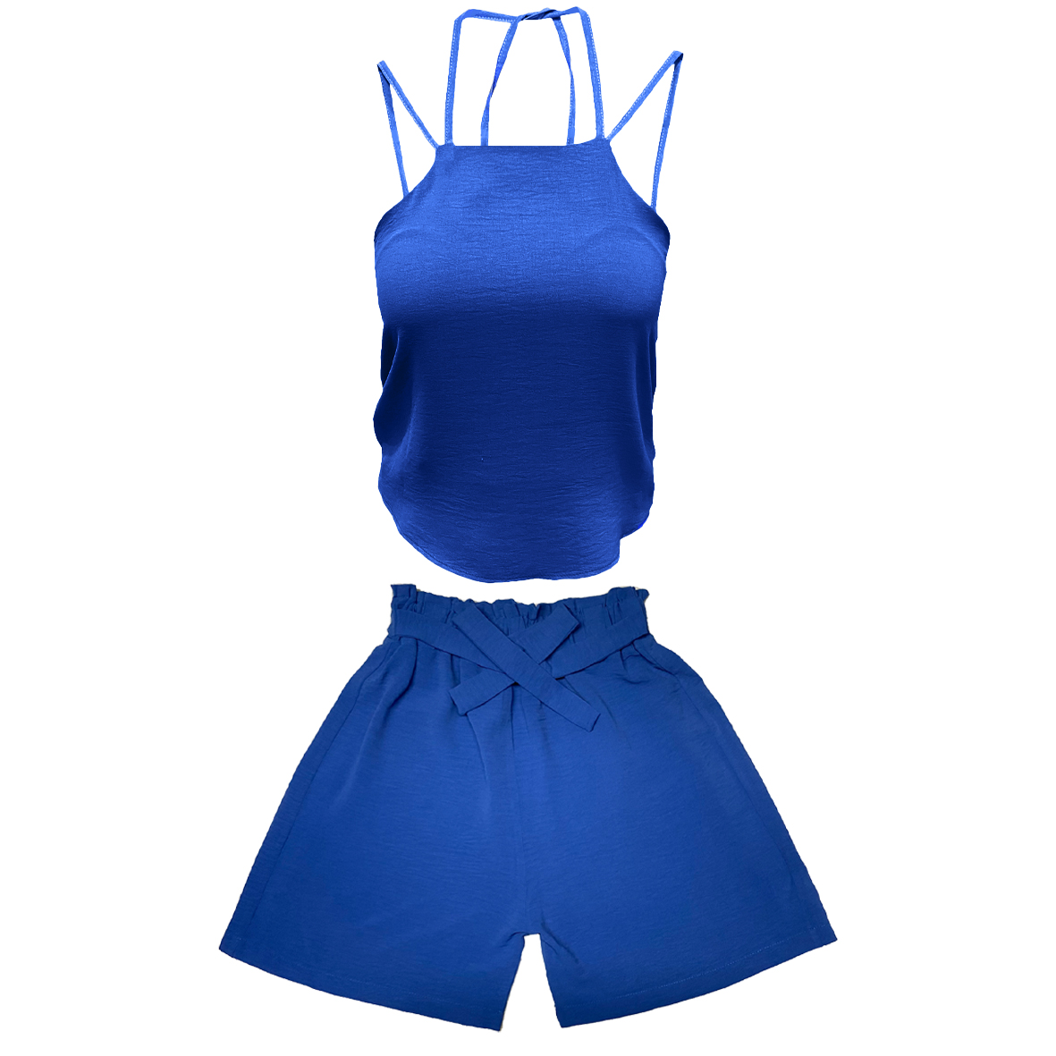 ست تاپ و شلوارک زنانه مدل ابر و بادی کد 1008 رنگ آبی / TOSHNA