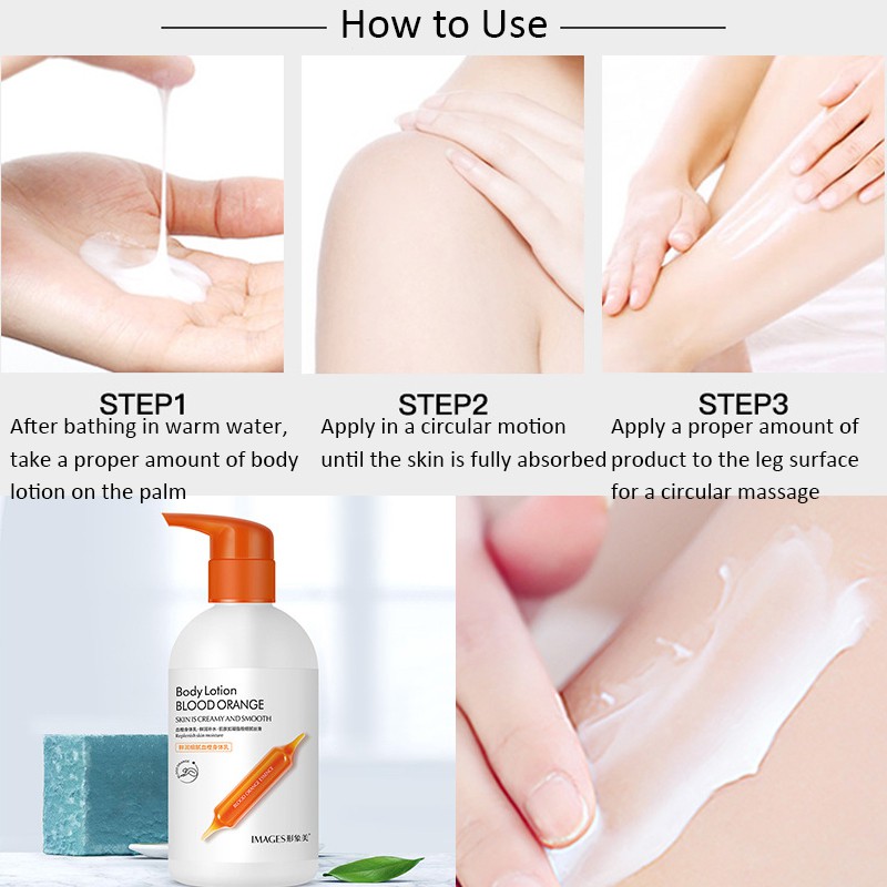 لوسیون بدن پرتقال خونی ایمیجز برای آبرسانی قوی پوست و مرطوبکنندگی پوست بدن مناسب است. با آبرسانی پوست به بهبود جوش بر روی بدن میتوان کمک کرد و باعث تاخیر در شل شدن پوست شد. این محصول با فرمولاسیون خاص خود به رفع تیرگی نواحی بدن، ازبین بردن خشکی پوست، رفع چین و چروک کمک کرده و از ایجاد جوش جلوگیری میکند. این لوسیون مناسب استفاده برای بعداز حمام است که باعث خوشبو شدن بدن میشود.