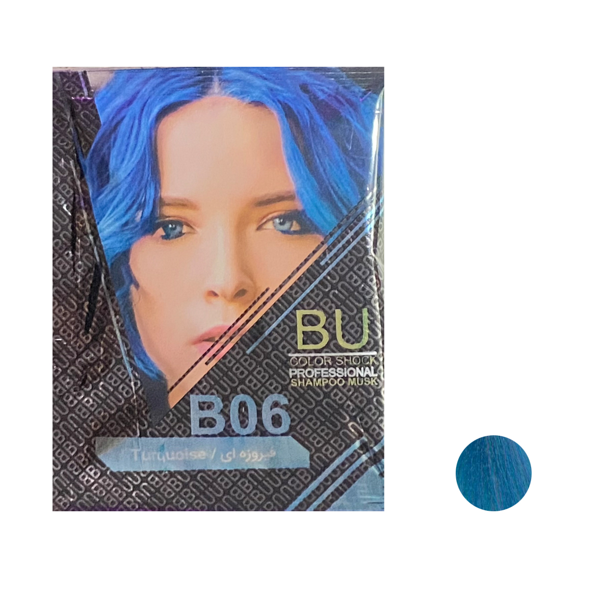 شامپو رنگ مو BU شماره B.0۶ حجم 30 میلی لیتر رنگ فیروزه ای