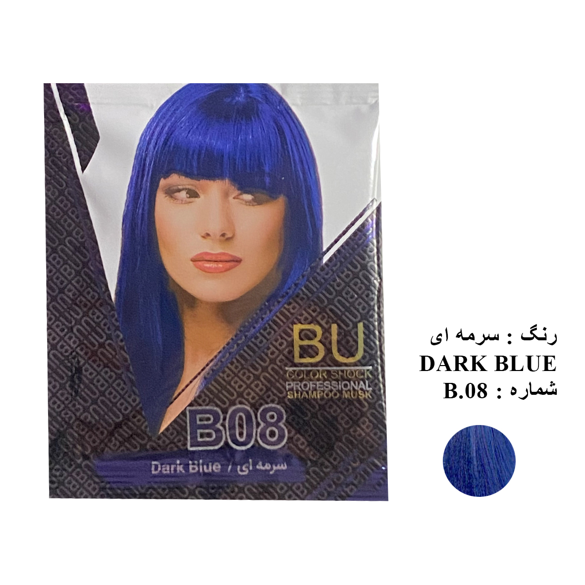 شامپو رنگ مو BU شماره B.0۸ حجم 30 میلی لیتر رنگ سرمه ای