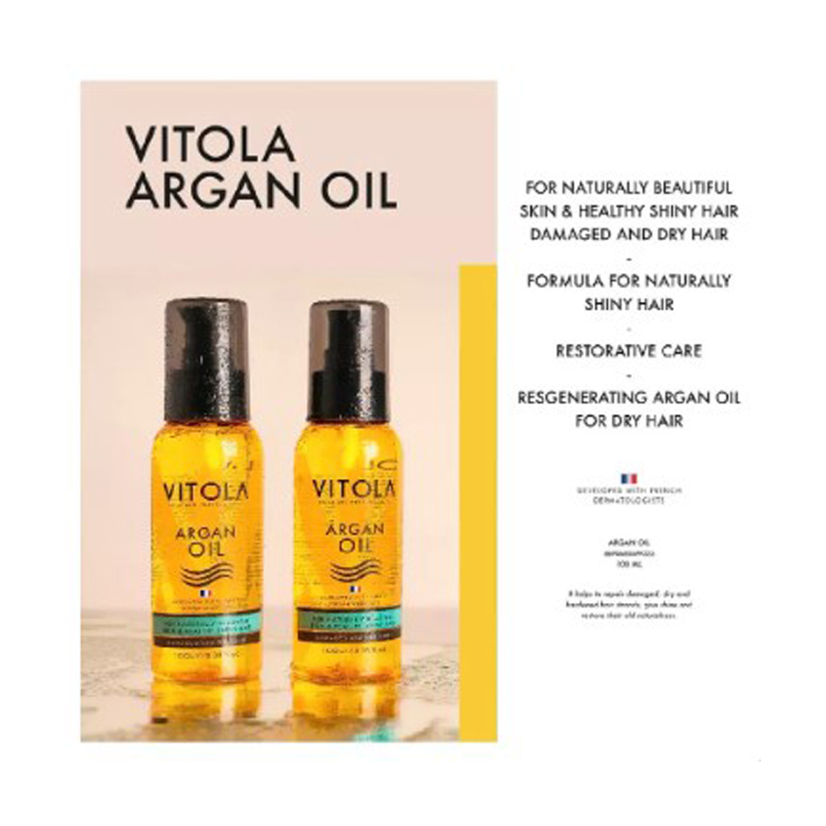 روغن آرگان مناسب موهای خشک و آسیب دیده و انواع موی سالم و معمولی ، ویتولا بدون شک یکی از بهترین، موثرترین و شناخته شدهترین روغنها در جهت تقوی موها میباشد. به ویژه این روغن در تقویت ساقه مو حرف اول را برای گفتن دارد. انواع اسیدهای چرب و ویتامین E موجود در این ماده، بهترین سرم طبیعی تقویت کننده ساقه مو را بنا کرده است.