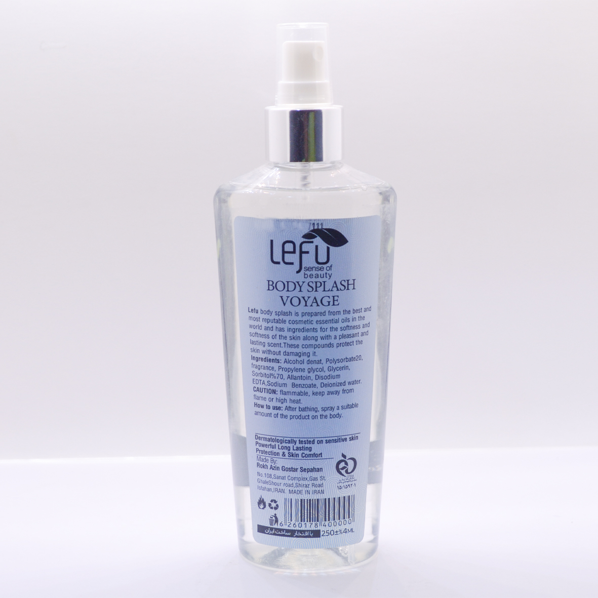 اسپری خوشبو کننده بدن لفو با رایحه VOYAGE حاوی اسانس ادکلن اصلی با گرید بهداشتی تحت لیسانس شرکت اصلی در ایران تولید می شود که با داشتن عصاره آلورا و دکسپنتول باعث نرمی و شادابی پوست شما می گردد همچنین رایحه خوش این بادی اسپلش 24 ساعت بر روی بدون شما مانده و لکی بر لباس شما ایجاد نخواهد کرد.